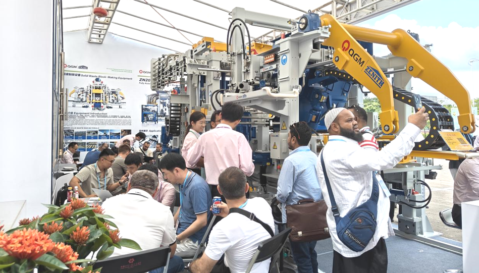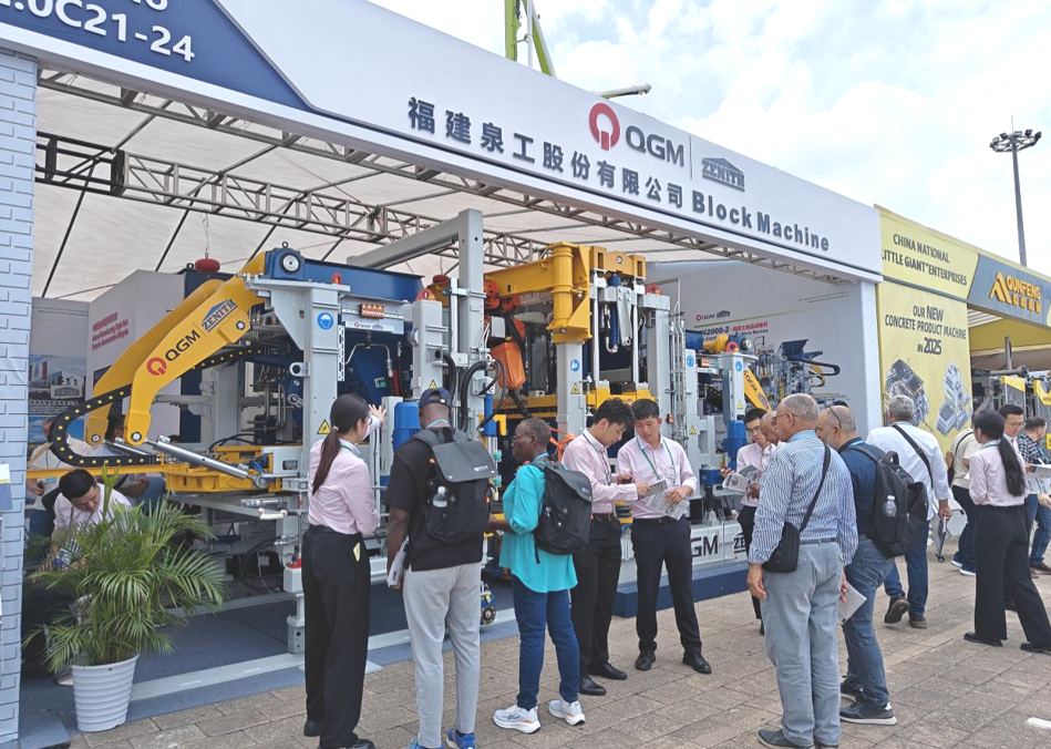 Á þessari Canton Fair sýndi Quangong Co., Ltd. nýjustu óbrennda múrsteinsvélarnar og framleiðslulínubúnað fyrir steypublokkir. Básinn dró til sín mikinn mannfjölda þar sem hyrnt sýningarsvæði steypukubba laðar að alþjóðlega kaupendur til að staldra við og spyrjast fyrir – með ofnalausri framleiðslu, lítilli orkunotkun og sjálfbærni í umhverfinu. Sýning ZN Series snjöllu múrsteinsframleiðslulínunnar vakti einnig verulega athygli. QuanGong samþætti fjarrekstur og viðhald með skýjagreiningu í múrsteinsframleiðslubúnaði sínum, sem gerir notendum kleift að öðlast dýpri innsýn í nýjustu afrek fyrirtækisins í endurvinnslu úrgangs úrgangs og framleiðslutækni með lágkolefnismúrsteinaframleiðslu.