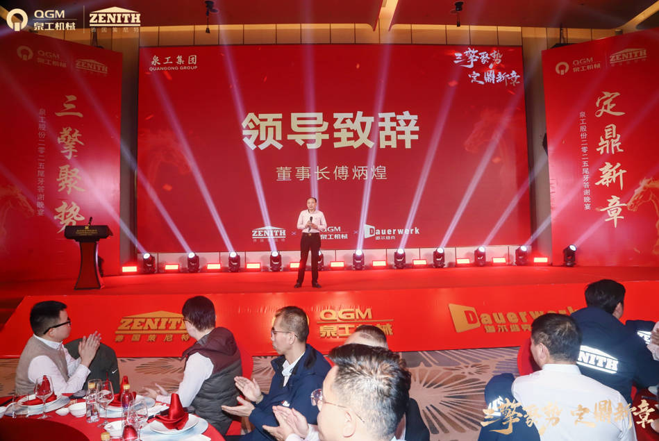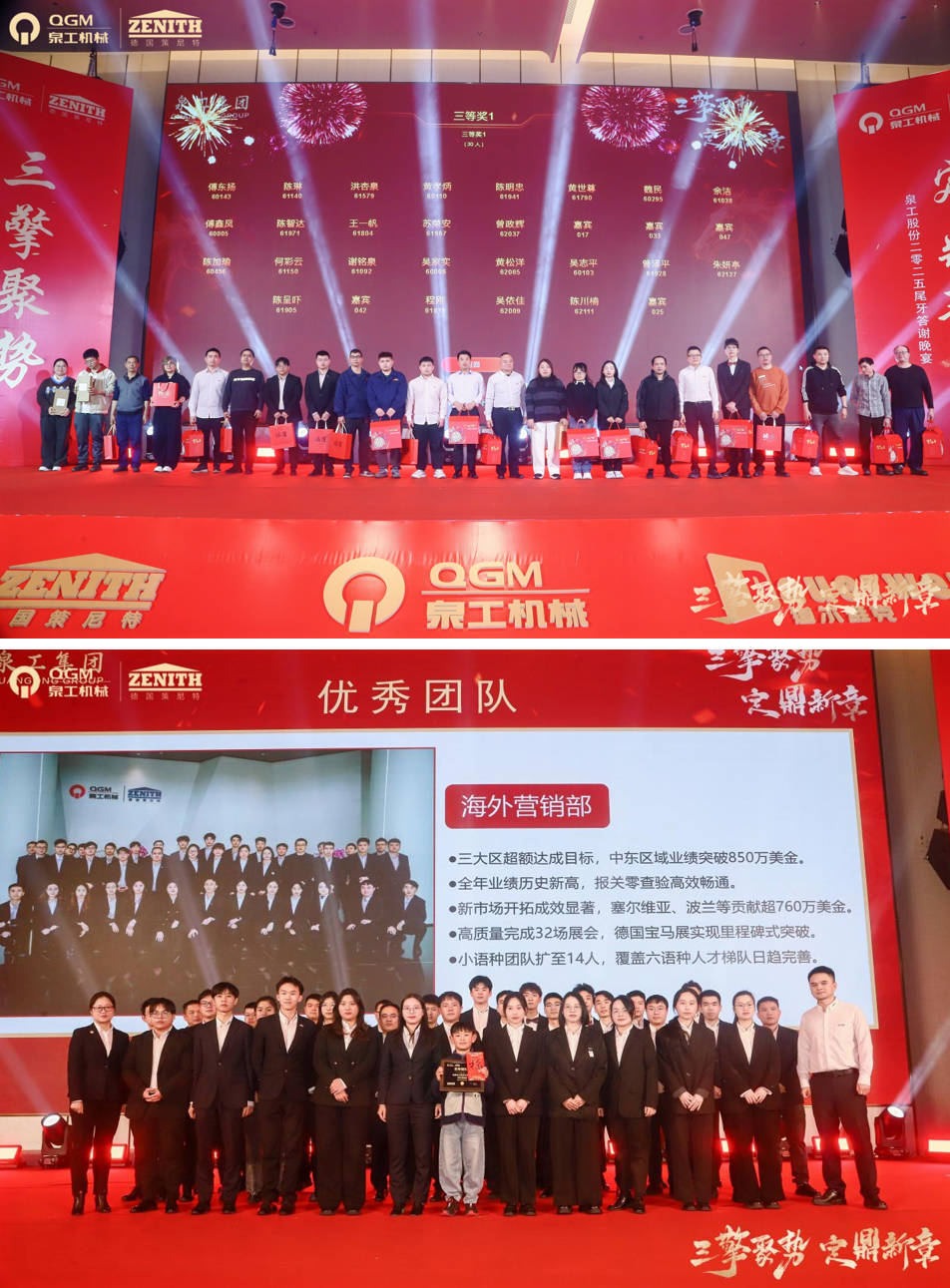 Innan um hátíðlegt andrúmsloft nýársins, hélt Quangong Co., Ltd. veglega árshátíð sína fyrir árslok 2025. Undir þemanu „Three Engines Gathering Momentum, Forging a New Chapter“ söfnuðust allir starfsmenn Quangong saman til að segja frá ferðalagi sínu, teikna upp þróunarteikningar og leggja af stað í nýársferð innan um hlátur og gleði.